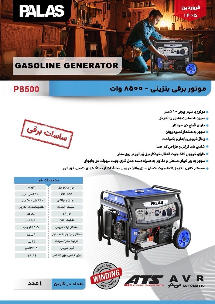 موتور برق بنزینی ۸/۵ کیلووات پالاس مدل P8500