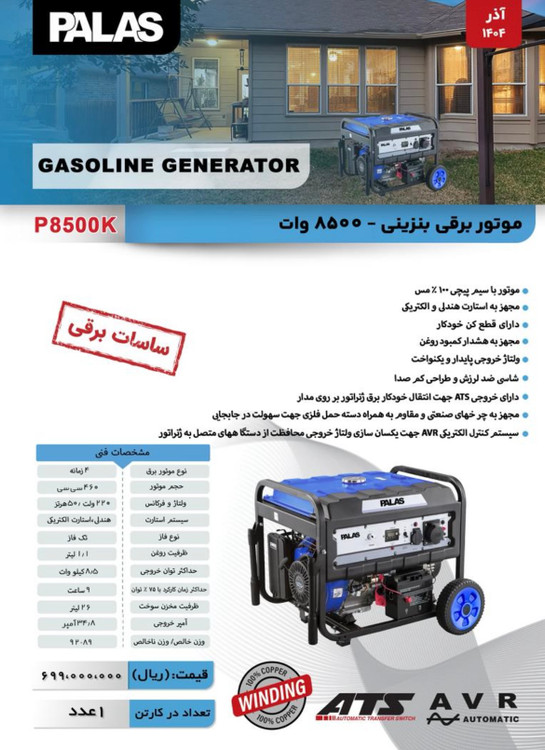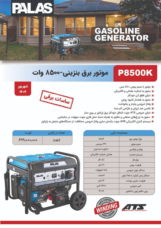 موتور برق بنزینی ۸/۵ کیلووات پالاس مدل P8500K