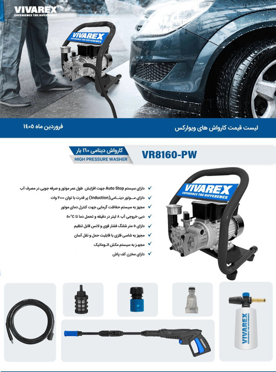 کارواش دینامی ۱۶۰ بار ویوارکس مدل VR8160-PW