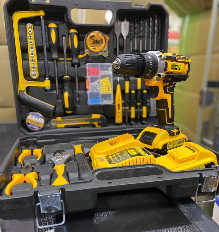 کیت دریل شارژی چکشی و ابزار طرح دیوالت مدل kit-24v