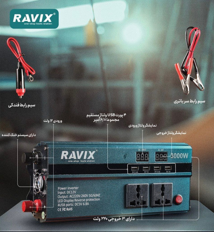 مبدل برق ۱۲ به ۲۲۰ ولت ۳۰۰۰ وات اسمی راویکس مدل RX-3000W