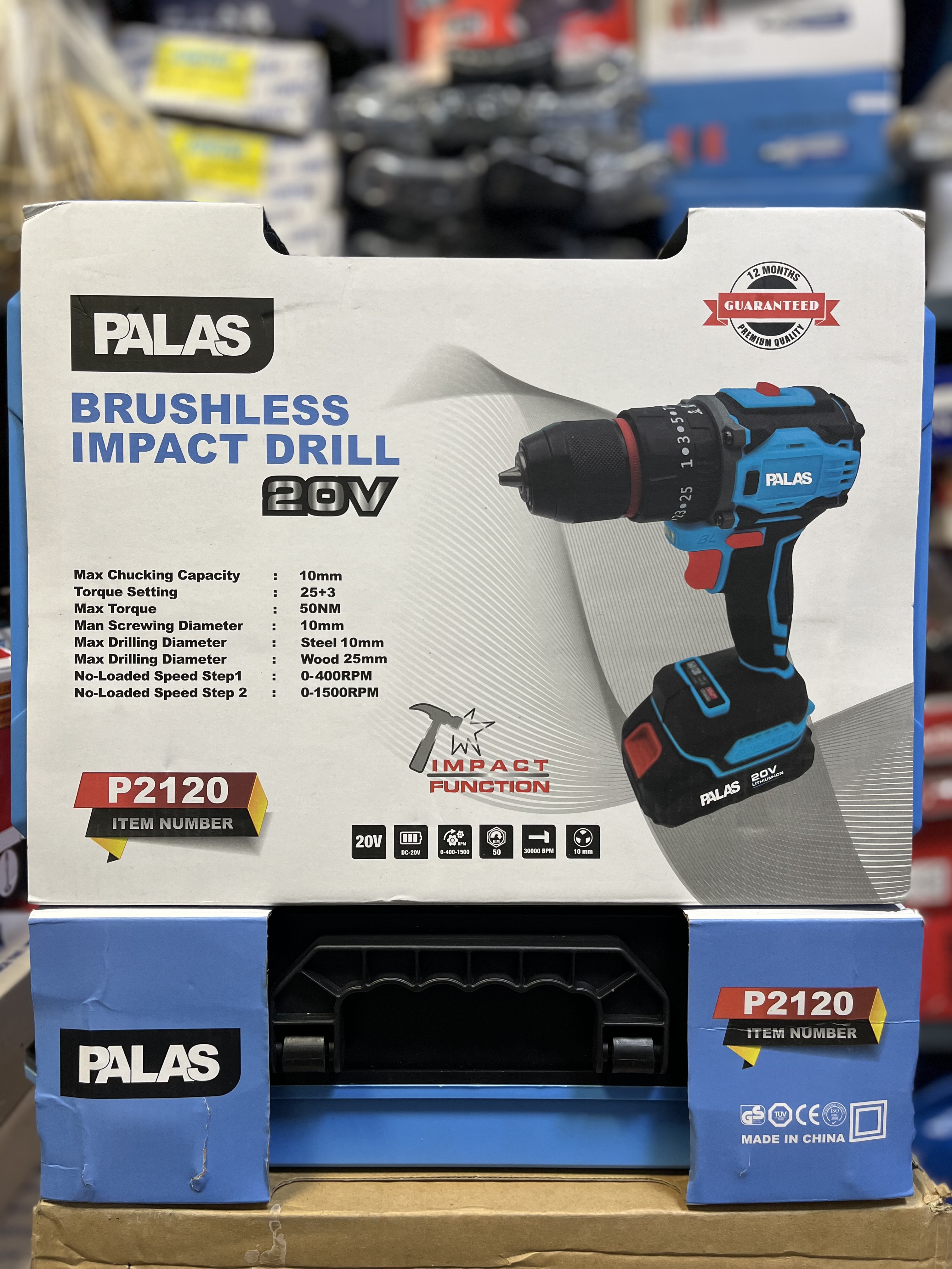 دریل شارژی چکشی براشلس ۲۰ ولت پالاس مدل P2120