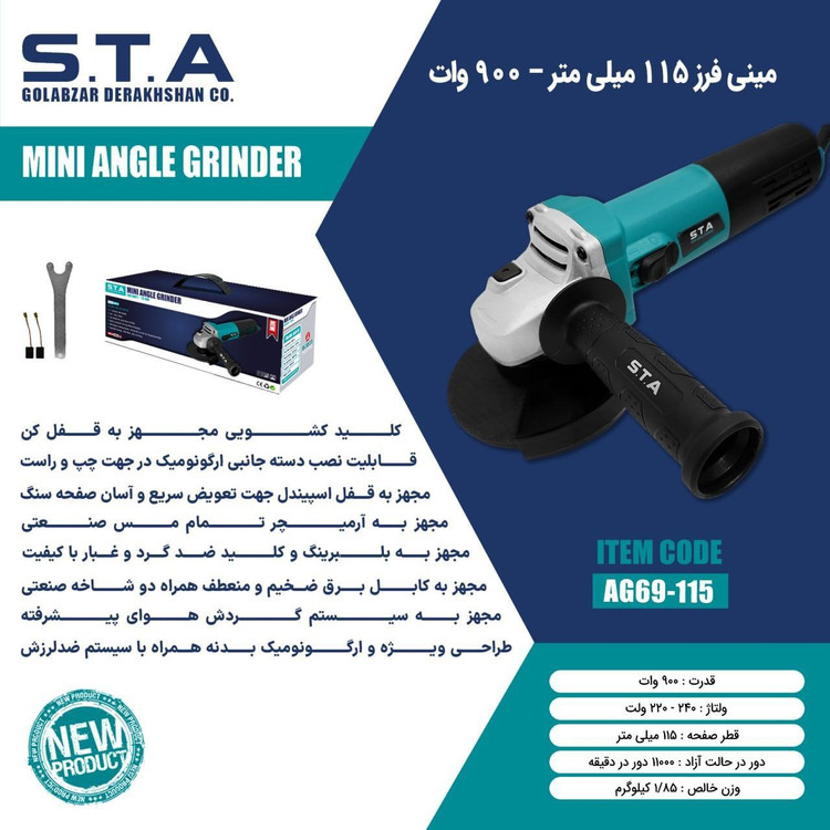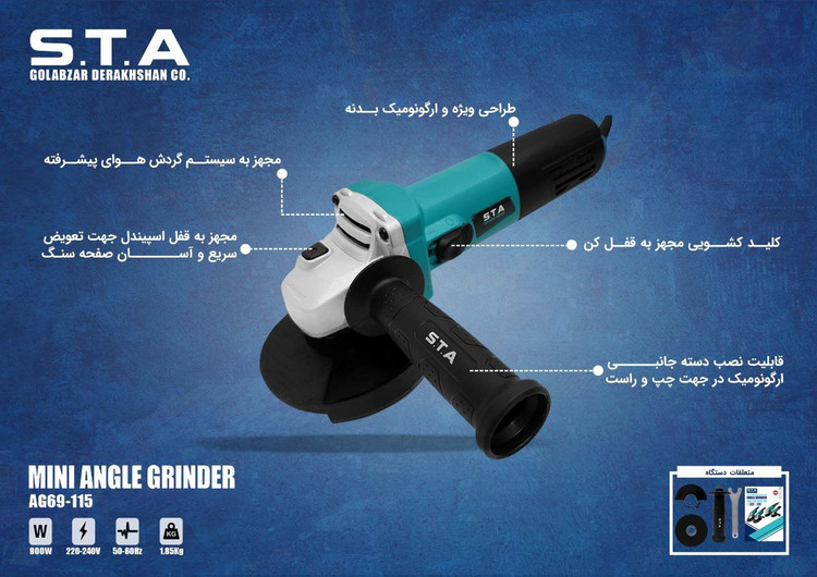 مینی فرز ۹۰۰ وات اس تی ای مدل AG69-115
